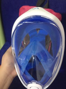 My husband’s mask was a perfect fit. The silicone flap creates a tight seal that prevents water from seeping inside the mask. Mine’s a great fit although the seal on the upper part of the mask isn’t as tight so water seeps in a little. That’s okay because the water drains to the bottom of the mask, seen below: