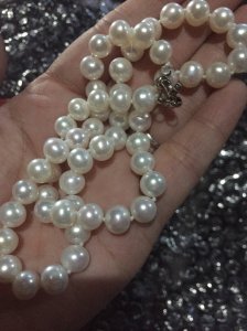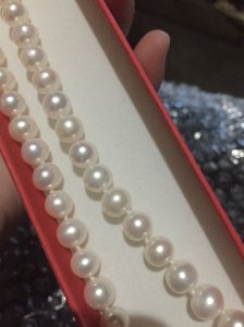 First off, the seller was really nice. I was working on a limited budget and was vocal about it. She was quite understanding about the whole thing and gave me a great price. I ordered an 18″ necklace comprised of 8 mm top-quality freshwater pearls. Yes, I wish I got the SSPs but for a Christmas gift, that was pushing it.