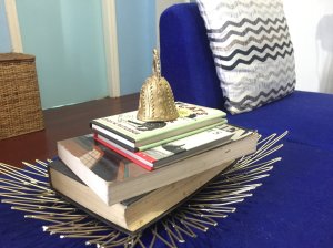 Another metallic piece that I got from Our Home is the fruit holder turned book organizer pictured above. I had plans of getting a mirrored serving tray during one of our outings but they were so pricey! Not giving up on that plan but this metallic fruit holder will do in the meantime. The gold bell is a souvenir we got while in Davao. I wish we bought more!