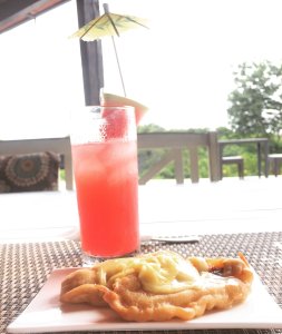 After taking care of the paperwork, we were led to the restaurant nearby for a quick snack: a watermelon shake and a small serving of Tugawe Cove’s famed maruya. The rumors are true, the maruya is heavenly! It wasn’t overly sweet and is slightly crunchy too. The melted cheese on top adds to the complexity of the flavor. On the other hand, the watermelon shake is so, so refreshing. Went perfectly with that gorgeous background: