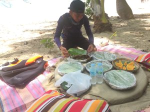 We ate lunch at one of the beaches we visited. As usual, Gerald was busy doing something. He prepared this lovely spread while we were frolicking in the waters: