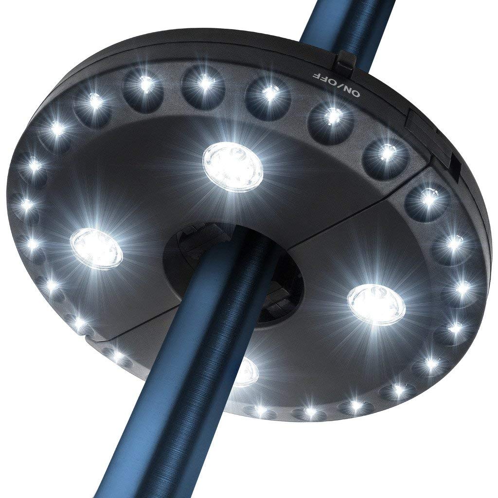 No need to bother with tangled cords, the LEDGE portable patio light is a plug and play lighting fixture. These battery-operated outdoor umbrella pole lights require no wire, no power socket, no electricity!