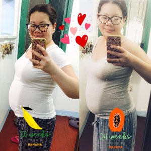 Isn’t it weird that my 20 weeks bump looked bigger than my 24-week bump? I think at that time, I gained a lot of weight so the bump looked extra huge. We just had a follow-up checkup and the doctor said I only gained 2 kilos this time, to her utter surprise. I can tell she hasn’t gotten over the 6 kilos I gained during the first trimester, lol. So far, I gained a total of 24 pounds already, about 11 kilos. Still processing this and trying to figure out how I’ll lose all the pregnancy weight but oh, well.