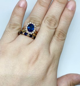 There’s no gap if I wear my plain band with the Diana ring but there’s a bit of a gap if I wear my diamond and sapphire wedding ring just because the larger gems are in the way.